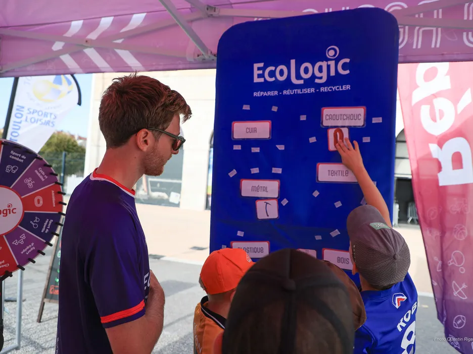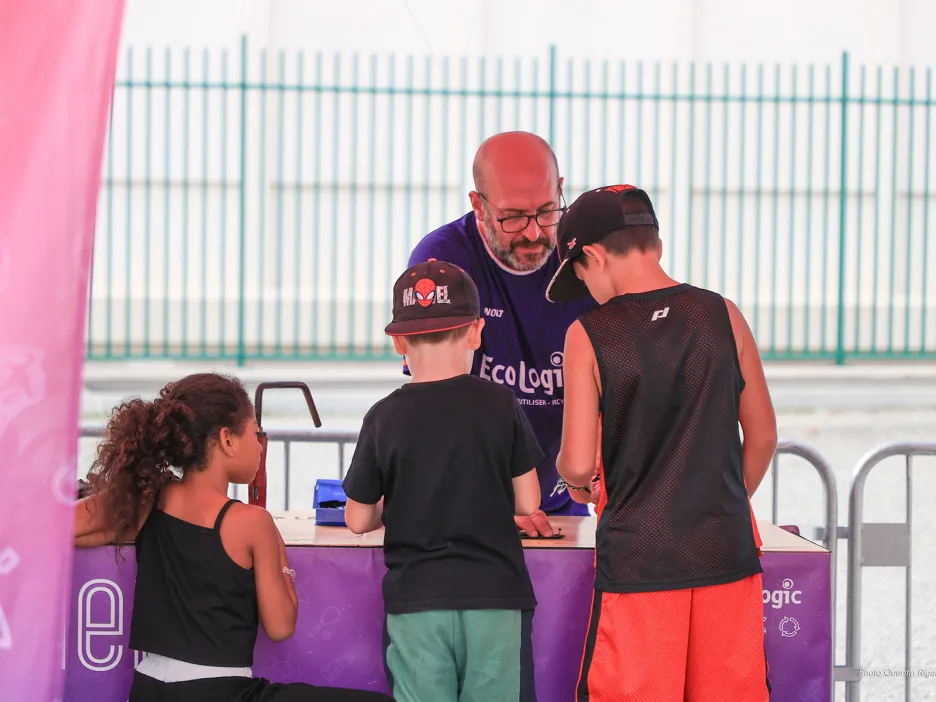 Depuis 2022, il est possible de recycler ses ballons de foot, sa raquette de tennis ou sa planche de skate. Près de 4 000 points de collecte matérialisés par des poubelles roses sont répartis un peu partout dans l’Hexagone, notamment dans les magasins d’articles de sport et permettent de donner une nouvelle vie à ce matériel trop usagé pour être utilisé ou rendu obsolète par les récentes évolutions techniques. Même si 27 000 tonnes d’objets sportifs, soit l’équivalent en poids de 3 Tour Eiffel, ont été collectées l’an dernier, cette filière reste encore à faire connaitre et à développer. Afin d’acquérir les bons réflexes, les enfants sont repartis avec un porte-clé confectionné devant eux avec de vieux pneus de vélos. Ils ont aussi pu s’asseoir sur des chaises créées avec d’anciennes planches de skate.