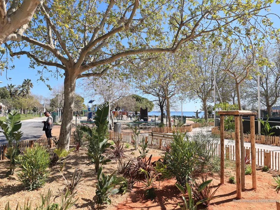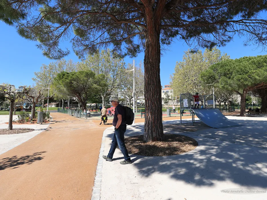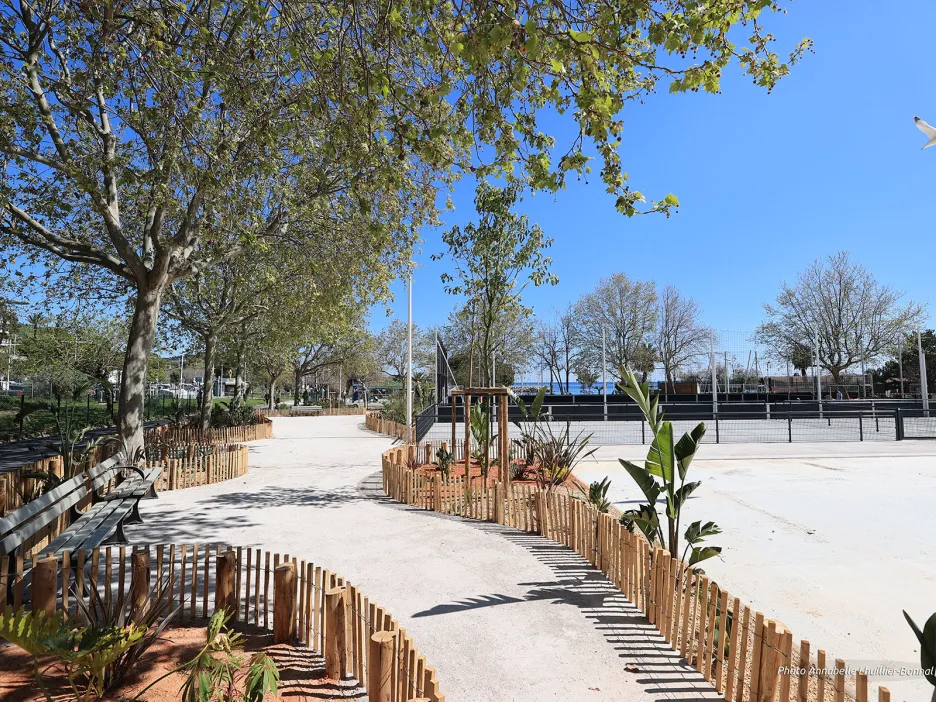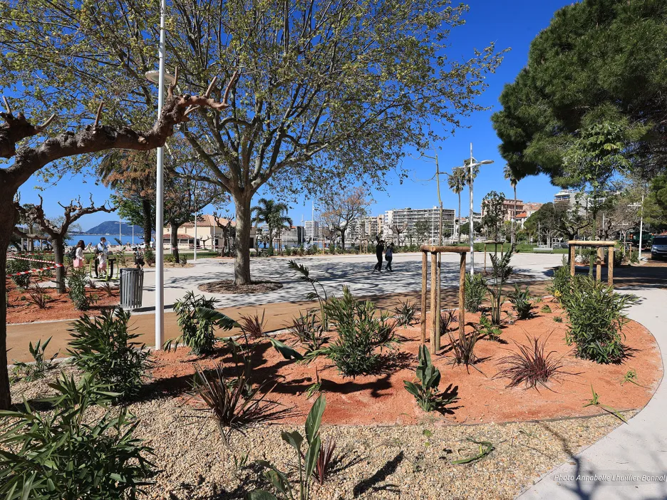 Et quoi de mieux que de se mettre ou remettre au sport dans un site privilégié où la vue sur la rade des Vignettes et l’aménagement paysager permettent de dépasser ses limites. Les abords de la plaine des sports ont été entièrement redessinés grâce à une ambiance végétale qui renforce la place de la nature tout en délimitant les différentes activités coexistant sur les plages du Mourillon. 22 nouveaux arbres ainsi 1 150m² de massifs aux essences adaptées au climat méditerranéen ont été plantés. Ce choix favorise la biodiversité tout en limitant les besoins en eau.