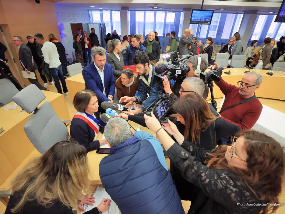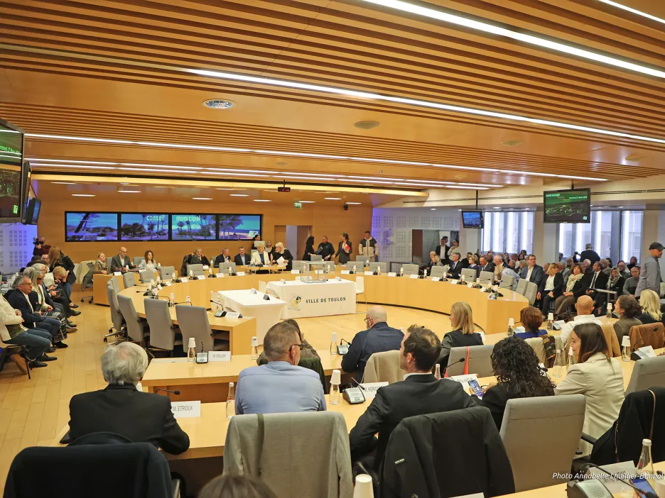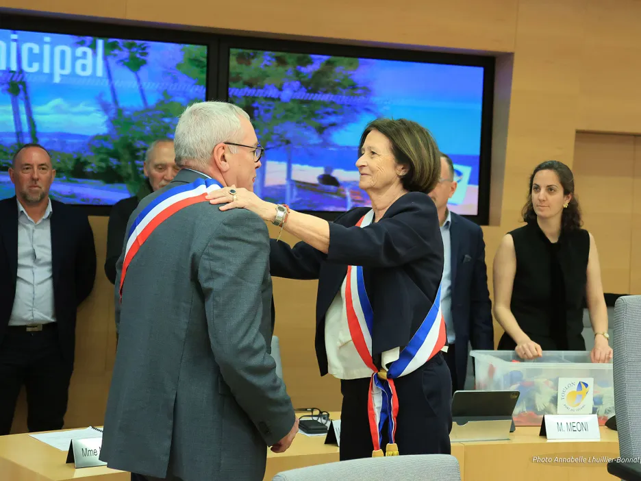 « Je suis la maire de tous les Toulonnais, je gouvernerai pour tous. Ma seule boussole sera l’intérêt général. Je veux que chaque habitant de cette ville sache qu’il trouvera à la mairie une équipe déterminée à écouter et à servir. Personne ne sera laissé sur le bord du chemin. Je veux que cette mandature soit utile. C’est peut-être le mot le plus important. Utile aux familles. Utile aux commerçants. Utile aux jeunes et aux aînés. Utile aux quartiers. Utile à ceux qui travaillent. Utile à ceux qui cherchent encore leur place », a déclaré Josée Massi, peu après avoir ceint l’écharpe de maire. Ce vendredi 27 mars se tenait le conseil municipal d’investiture. Dans la salle André Seguin, c’est l’effervescence des grands jours. La séance a été ouverte à 9 heures précises par Geneviève Levy : « parfois être doyenne d’âge peut comporter quelques privilèges. C’en est un aujourd’hui, en même temps qu’un grand honneur qui me permet de m’adresser à vous qui venez d’être élus ».