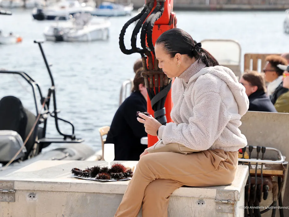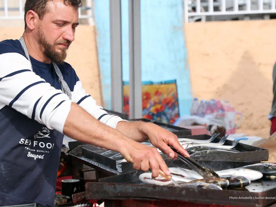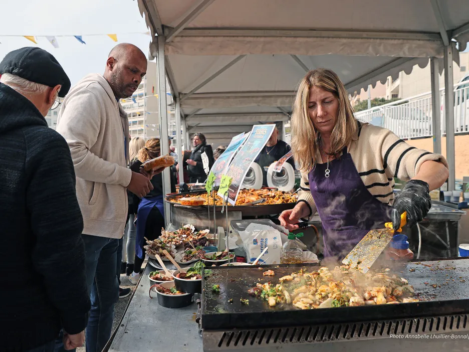 Devant les stands, les files d’attente s’allongeaient dans une atmosphère bon enfant ; exactement ce que Toulonnais et visiteurs étaient venus chercher. Derrière leurs fourneaux, les pêcheurs s’activent, sans répit. Face à eux, une véritable marée humaine… Friture de jols à la salicorne, assiette de sardines grillées, loups ou daurades à la plancha, soupe de poissons, fruits de mer… mais aussi produits du terroir. Salé ou sucré : on veut goûter à tout ! Surtout aux produits locaux.