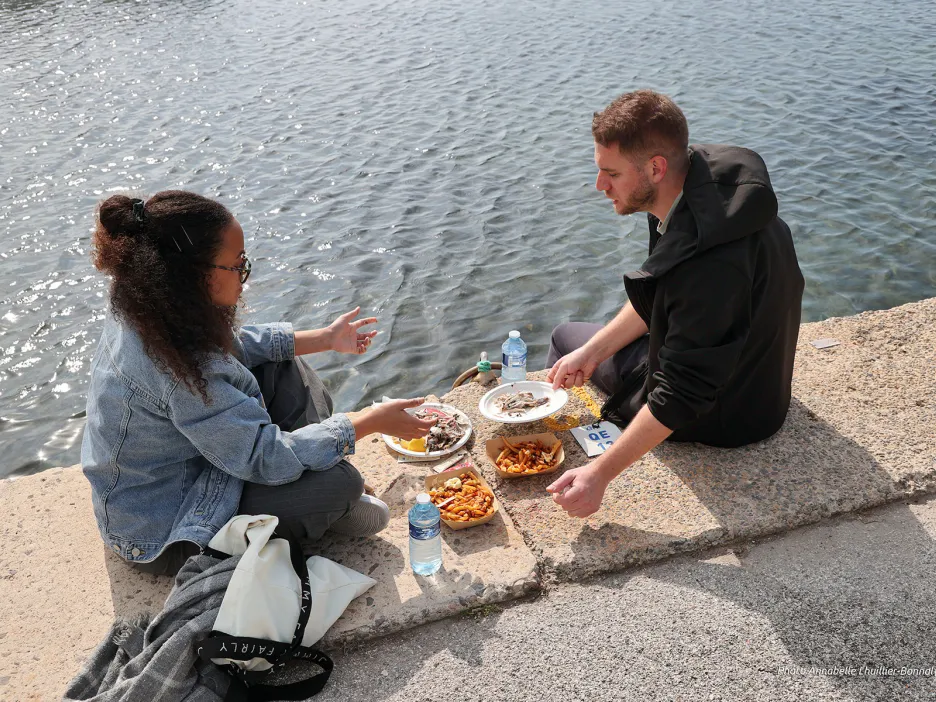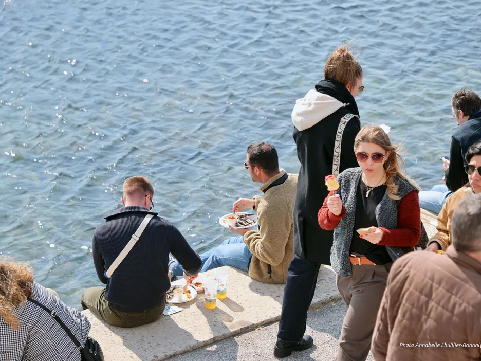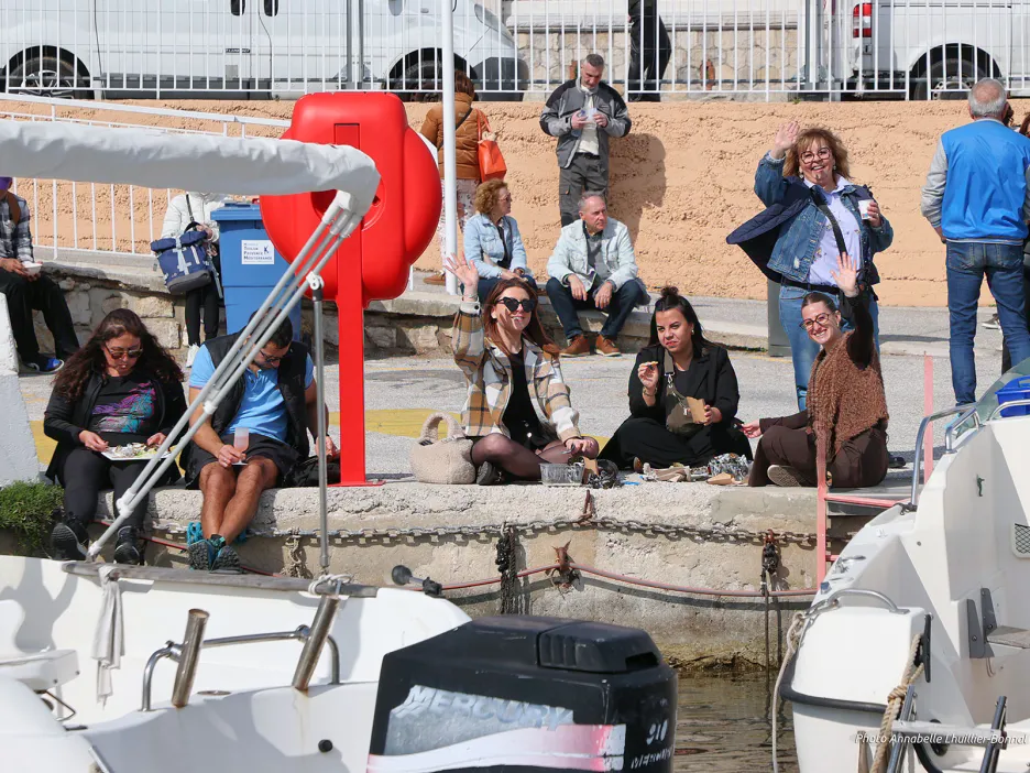 Dans les rues du Mourillon ou sur le littoral Frédéric-Mistral, il suffisait de suivre les couples, les familles ou les groupes d’amis. Tous les chemins menaient au port. Beaucoup descendaient. Certains remontaient déjà, les mains chargées de victuailles. Des emballages s’échappaient des effluves de poissons grillés, de thym et de romarin. Très rapidement les tables et chaises disposées ont été prises d’assaut. Et quand il n’y pas plus de place, on n’hésite à asseoir sur les pontons ou sur la digue face à l’horizon.