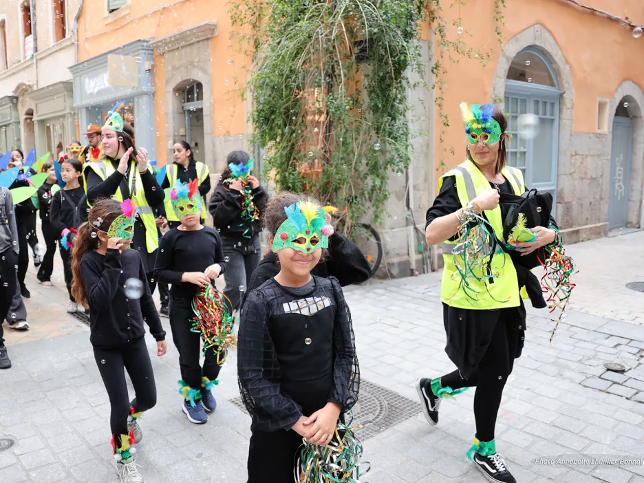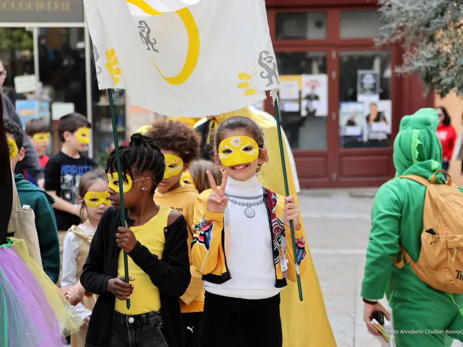 Un ciel bleu et un soleil éclatant étaient de la partie. Ce mardi 23 février, ils ont accompagné, de leurs éclats de lumière le carnaval des enfants inscrits dans les centres de loisirs municipaux, offrant aux costumes bigarrés des reflets chatoyants. À chaque centre, sa couleur… du jaune pour Strassel, du rose pour les 3-6 ans de la Florane, du blanc pour Font-Pré, du bleu clair pour Jean-Aicard… Durant ces vacances scolaires, chaque structure avait pour mission de décliner une teinte unique à travers des costumes originaux travaillés lors des ateliers créatifs.