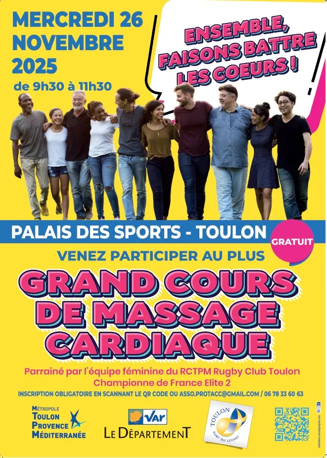 L'association PROTACC organise en partenariat avec la Ville de Toulon, la Métropole et le Département un grand cours de massage cardiaque gratuit.
