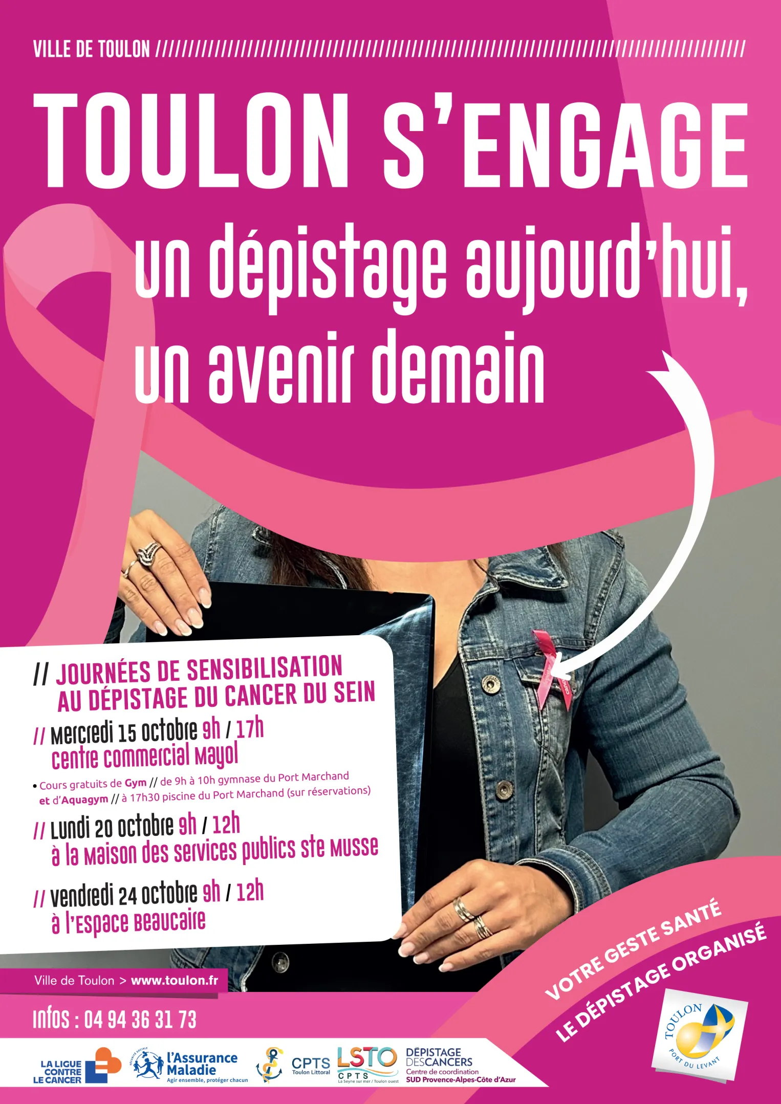 Le cancer du sein reste la 1re cause de décès par cancer chez la femme en France mais il se guérit dans 9 cas sur 10 s’il est détecté tôt. La Ville de Toulon entend renforcer l’information et faciliter l’accès au dépistage du cancer du sein, en organisant différentes manifestations en partenariat avec le Centre Régional de Coordination des Dépistages des Cancers, La Ligue contre le Cancer, les Communautés Professionnelles Territoriales de Santé de Toulon et la CPAM.