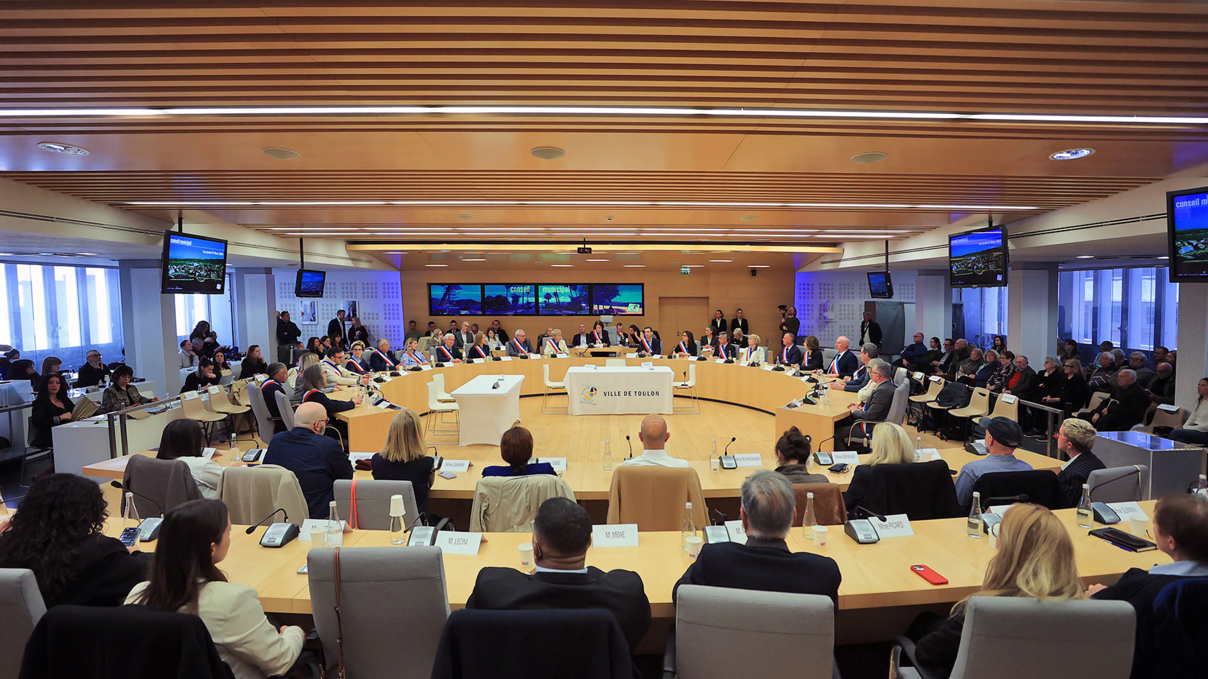 Le conseil municipal de Toulon est composé de 59 membres élus au suffrage universel. Il est réparti entre 45 élus de la majorité (le maire, 22 adjoints au maire, 22 conseillers municipaux) et 14 conseillers municipaux de l'opposition.