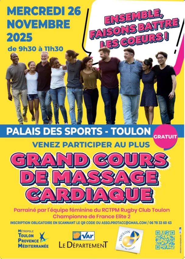 Grand cours de massage cardiaque 26 novembre à 09h30➔26 novembre 2025 à 11h30 Prévention, santé - Vie citoyenne Palais des Sports